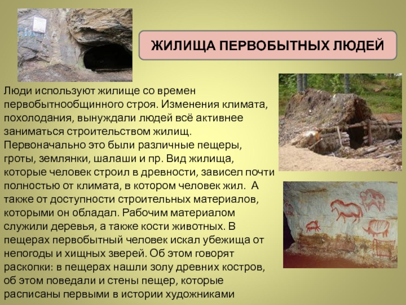 ЖИЛИЩА ПЕРВОБЫТНЫХ ЛЮДЕЙ