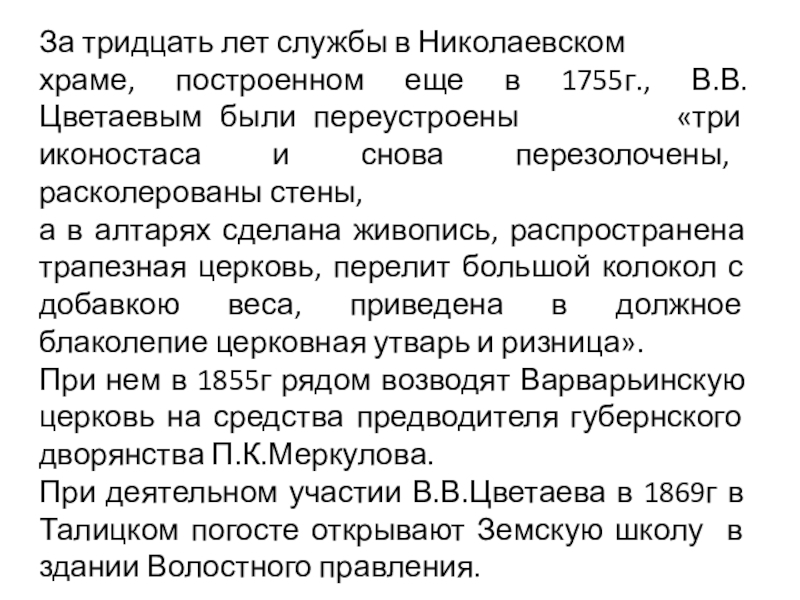 храме, построенном еще в 1755г., В.В.Цветаевым