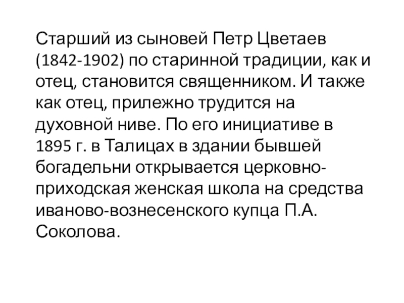 Слайд 8Старший из сыновей Петр Цветаев (1842-1902) по старинной традиции, как и