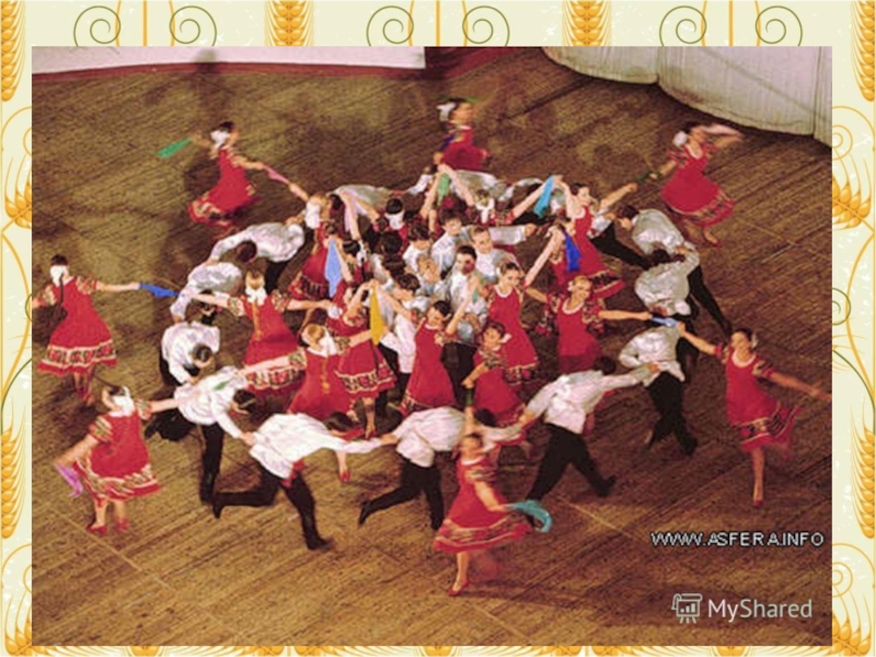Хоровод Один из самых основных и древних видов русского народного танца. Круговая композиция хоровода подобна солнцу, богу