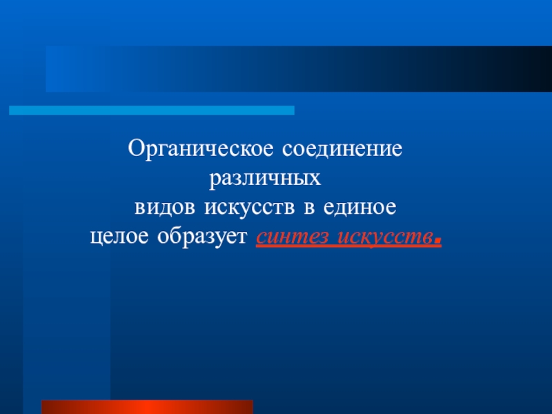 Органическое соединение различныхвидов искусств в единое целое образует синтез искусств.