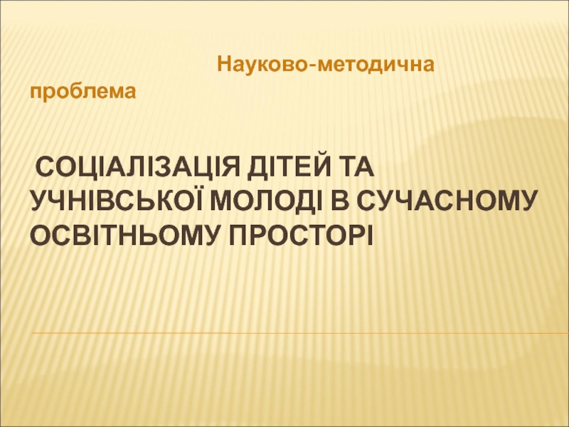 Слайд 1 СОЦІАЛІЗАЦІЯ ДІТЕЙ ТА УЧНІВСЬКОЇ МОЛОДІ В СУЧАСНОМУ ОСВІТНЬОМУ ПРОСТОРІ