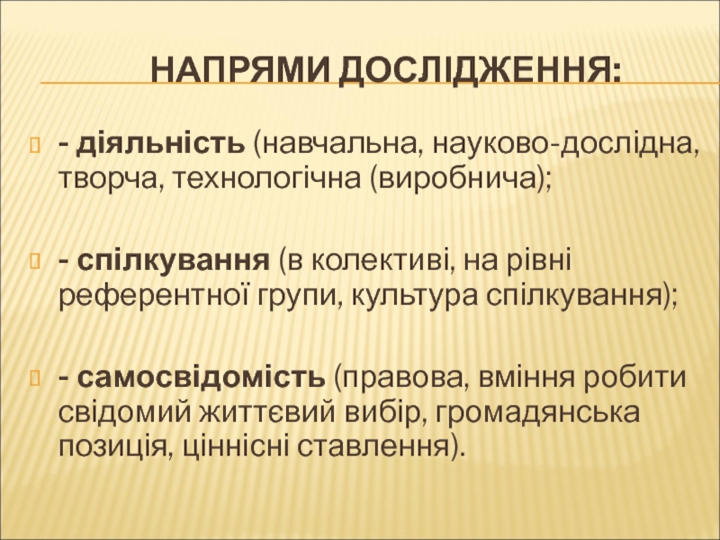 Слайд 6 НАПРЯМИ ДОСЛІДЖЕННЯ:
