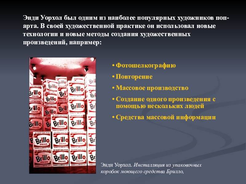 Энди Уорхол. Инсталляция из упаковочных коробок моющего средства Брилло,