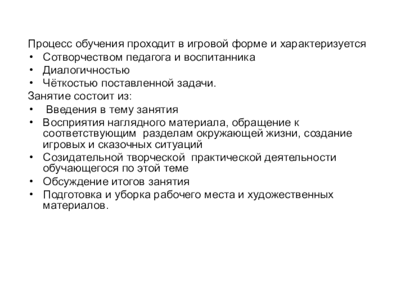 Слайд 3Процесс обучения проходит в игровой форме и характеризуется