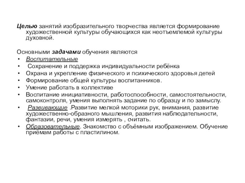 Целью занятий изобразительного творчества является формирование художественной культуры обучающихся как неотъемлемой