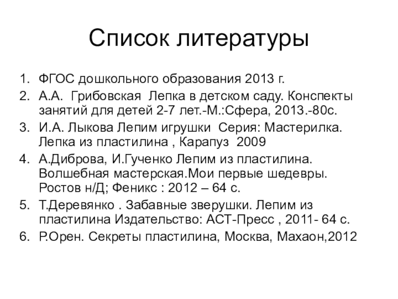 А.Диброва, И.Гученко Лепим из пластилина.Волшебная мастерская.Мои первые шедевры. Ростов н/Д; Феникс : 2012 – 64 с.