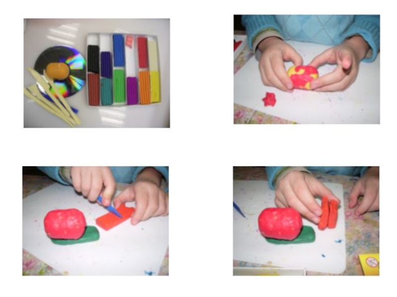 Поскольку занятие проводится для детей 4 - 6 лет, желательна помощь взрослого., который поможет следить за последовательностью этапов лепки.