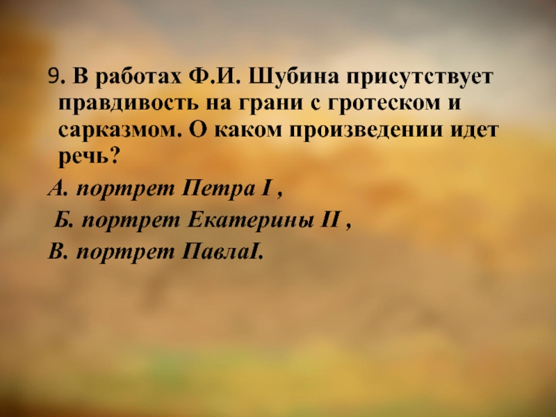 9. В работах Ф.И. Шубина присутствует правдивость на грани с гротеском и сарказмом. О каком произведении идет