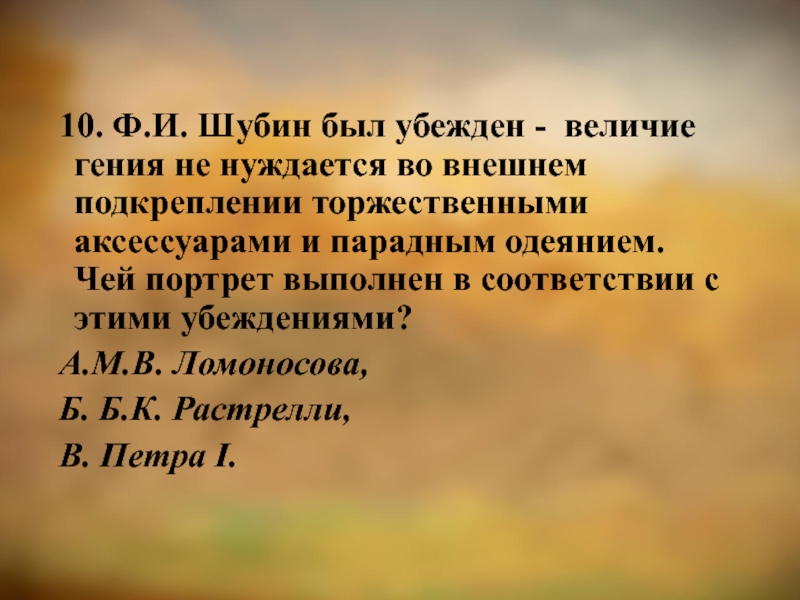10. Ф.И. Шубин был убежден - величие гения не нуждается во внешнем подкреплении торжественными аксессуарами и парадным