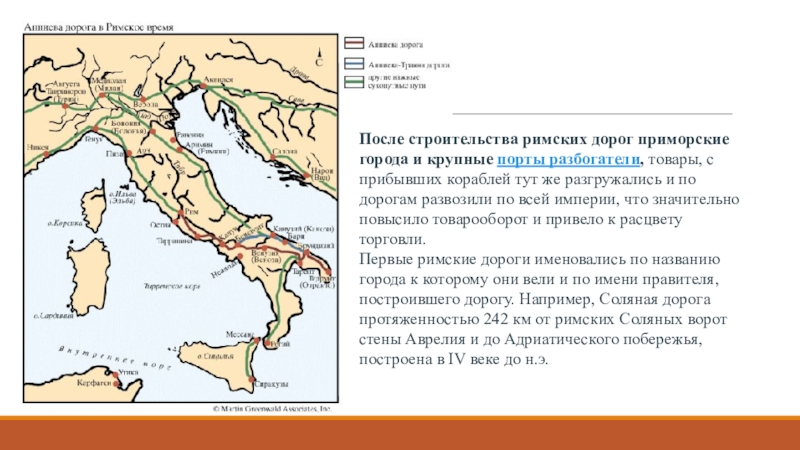 Простая и понятная организация дорожной сети помогала без труда попасть в Рим торговым караванам, для этого достаточно было на каждой дорожной развилке поворачивать на более широкую дорогу.