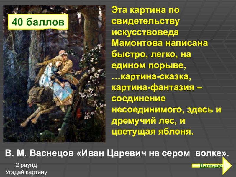 В. М. Васнецов «Иван Царевич на сером волке».