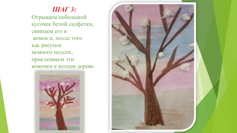 Слайд 6ШАГ 2: Рисуем ствол дерева темно-коричневой краской, добавляем основные ветки.