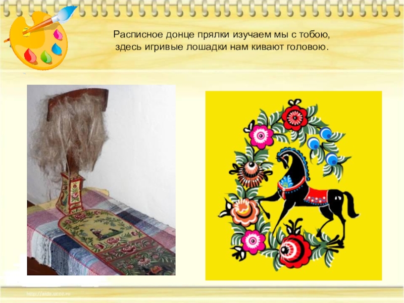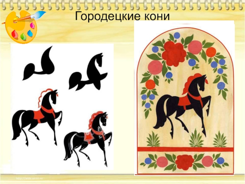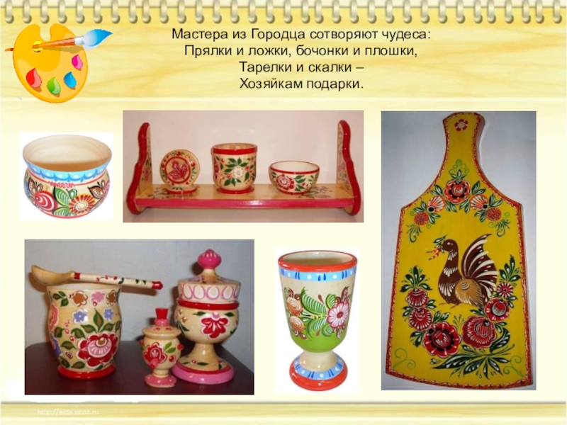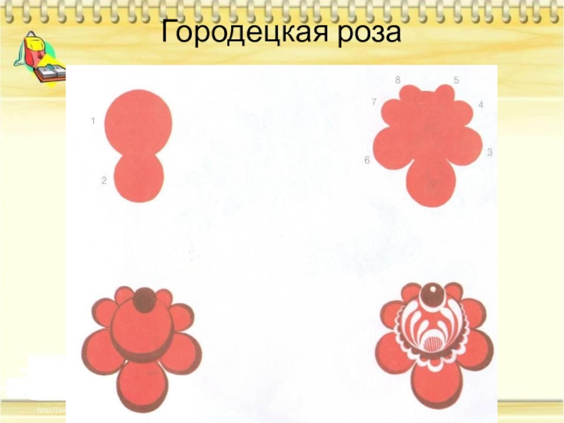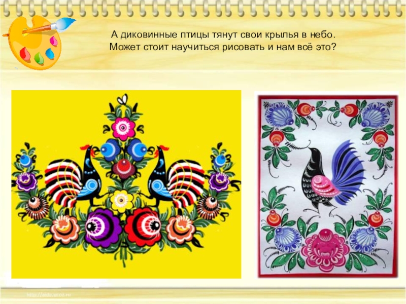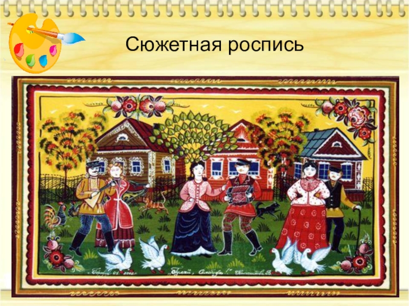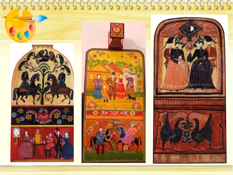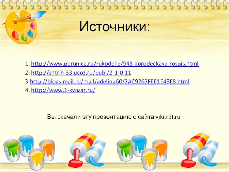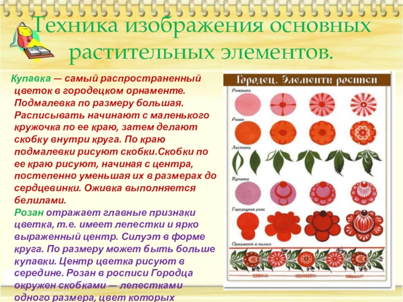 Третий этап — оживка (или разживка), т.е. тонкая разделка орнаментальных форм белилами. Оживки всегда наносят на однотонные силуэты, что придает им некоторую объемность.