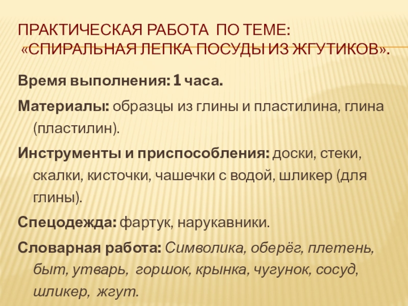 Слайд 34Практическая работа по теме: «Спиральная лепка из пластин»