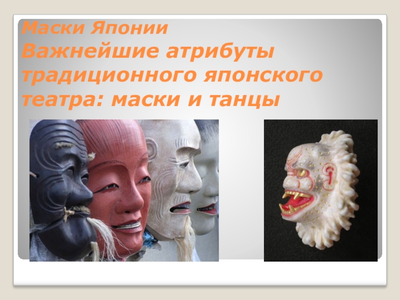 Слайд 27 Маски Японии Важнейшие атрибуты традиционного японского театра: маски и танцы