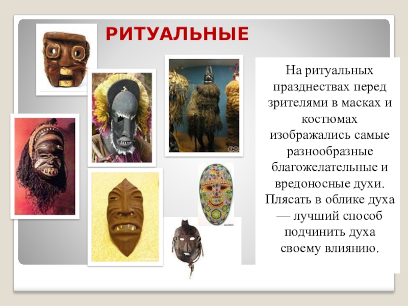 РИТУАЛЬНЫЕНа ритуальных празднествах перед зрителями в масках и костюмах изображались самые разнообразные благожелательные и вредоносные духи. Плясать