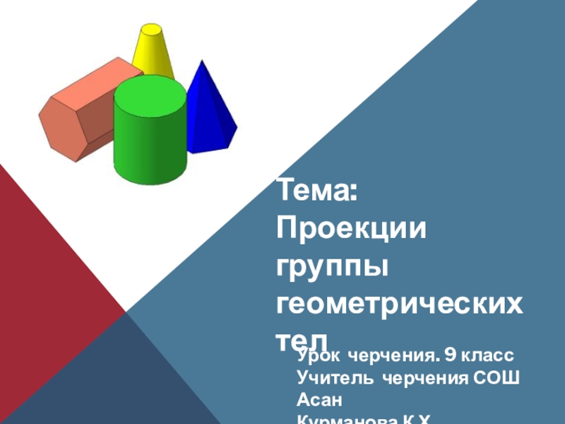 Урок черчения. 9 классУчитель черчения СОШ АсанКурманова К.Х.Тема:Проекции группыгеометрических тел