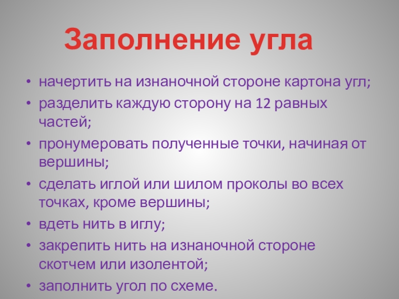 Заполнение угла