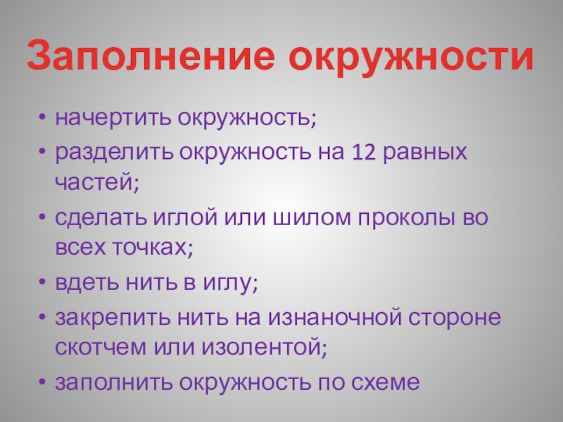Заполнение окружности
