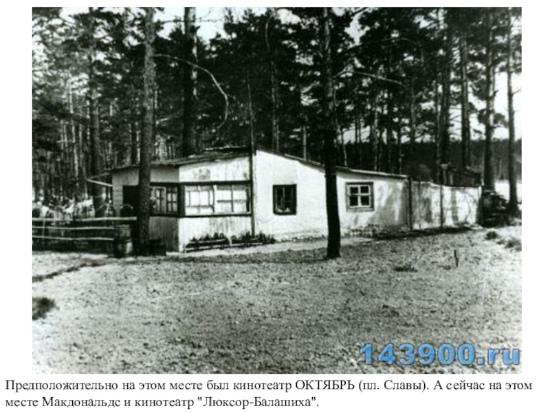 Слайд 15Предположительно на этом месте был кинотеатр ОКТЯБРЬ (пл. Славы). А сейчас