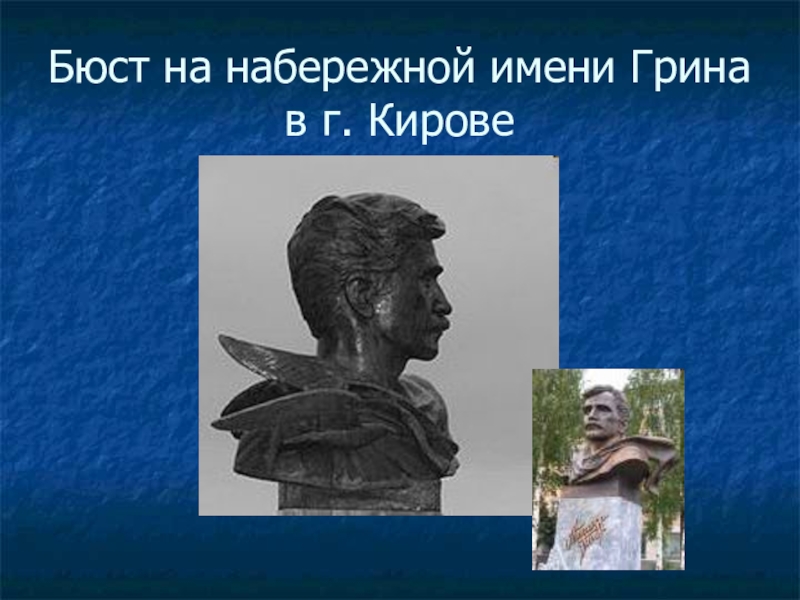 Слайд 18Бюст на набережной имени Грина в г. Кирове