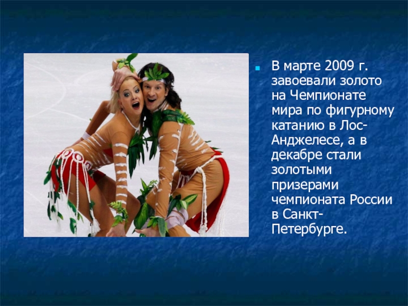 Слайд 39В марте 2009 г. завоевали золото на Чемпионате мира по фигурному