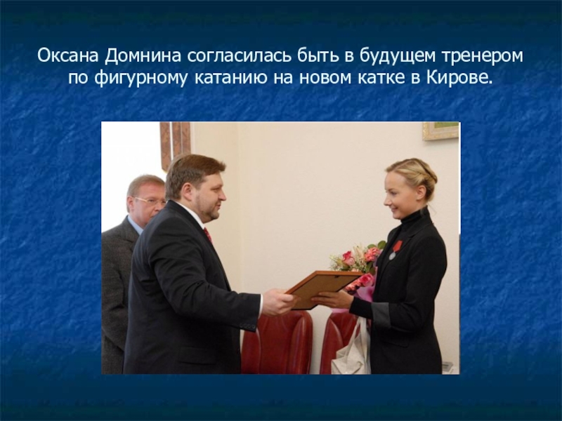 Слайд 40Оксана Домнина согласилась быть в будущем тренером по фигурному катанию на