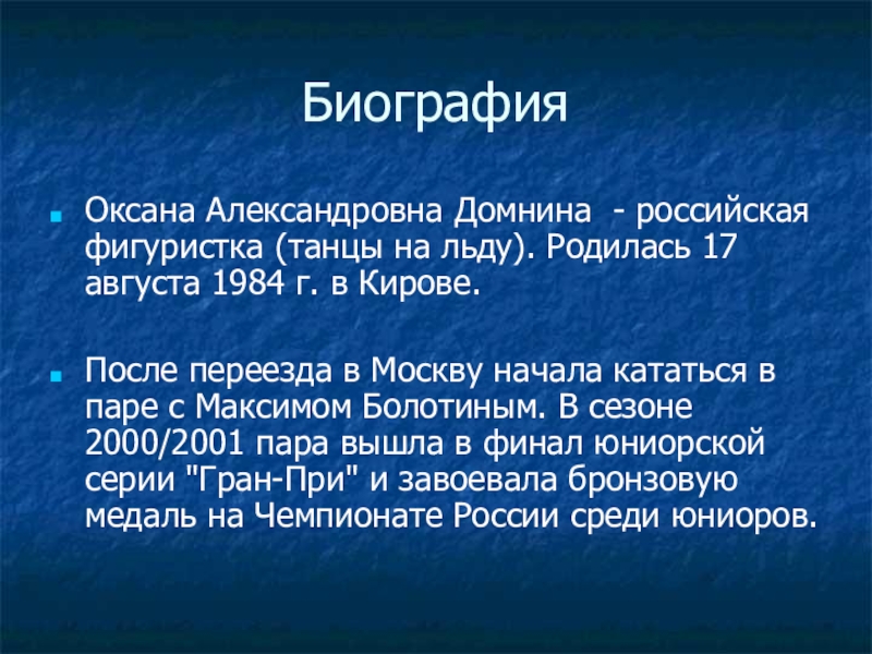 Оксана Александровна Домнина - российская фигуристка (танцы на льду). Родилась