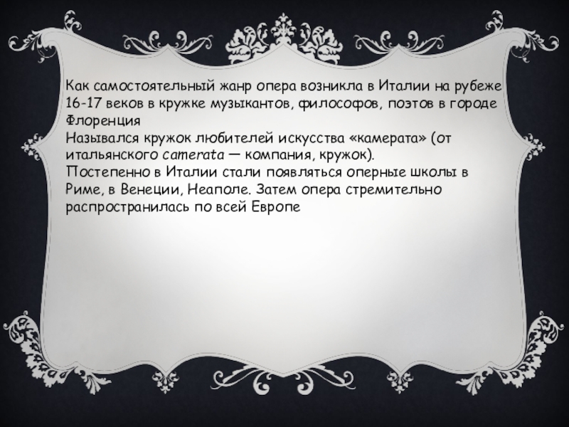 Слайд 8Как самостоятельный жанр опера возникла в Италии на рубеже 16-17 веков