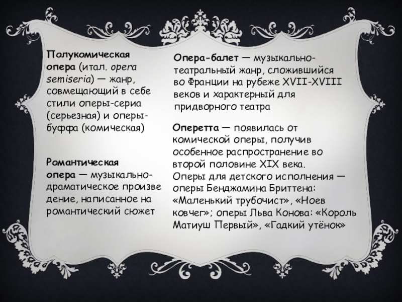 Слайд 10Оперетта — появилась от комической оперы, получив особенное распространение во второй половине XIX