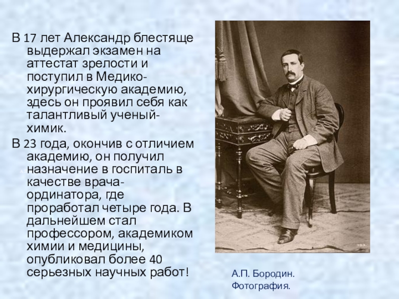 В возрасте 10 лет стал интересоваться химией, которая с годами из увлечения превратилась в дело всей его жизни.