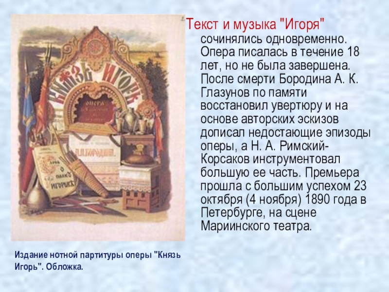 Издание нотной партитуры оперы "Князь Игорь". Обложка.