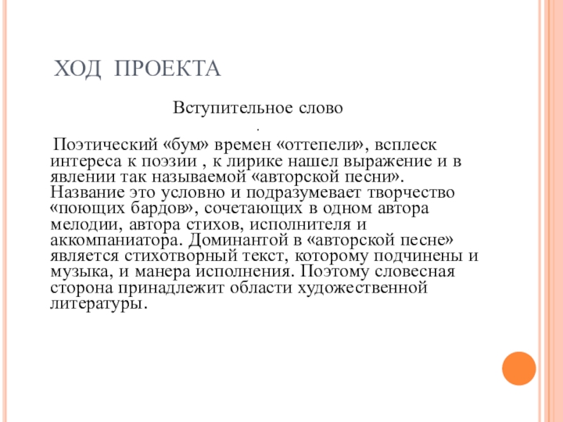 жанра «авторская песня» как уникальном явлении русской культуры;
