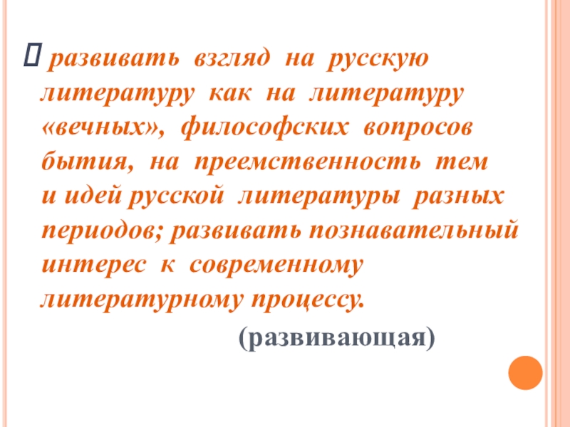 Слайд 5 развивать взгляд на русскую литературу как на литературу «вечных»,