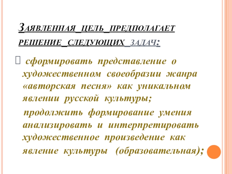 Слайд 3ЦЕЛЬ:НА ОСНОВЕ РАССМОТРЕНИЯ ОСОБЕНОСТЕЙ АВТОРСКОЙ (БАРДОВСКОЙ) ПОЭЗИИ