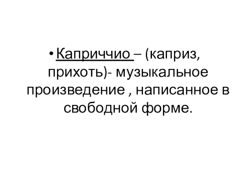 Каприччио – (каприз, прихоть)- музыкальное произведение , написанное в свободной форме.