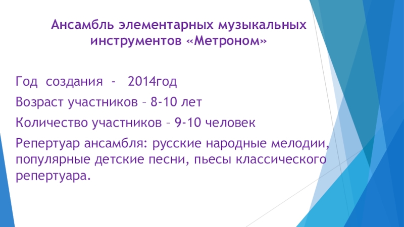 Слайд 12Ансамбль элементарных музыкальных инструментов «Метроном»