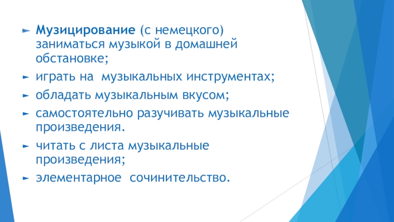 Слайд 2Музицирование (с немецкого) заниматься музыкой в домашней обстановке;