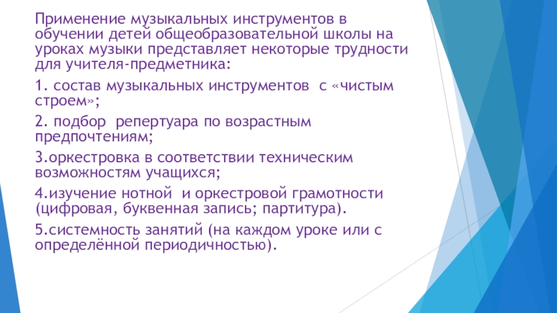 Слайд 9Применение музыкальных инструментов в обучении детей общеобразовательной школы на уроках музыки