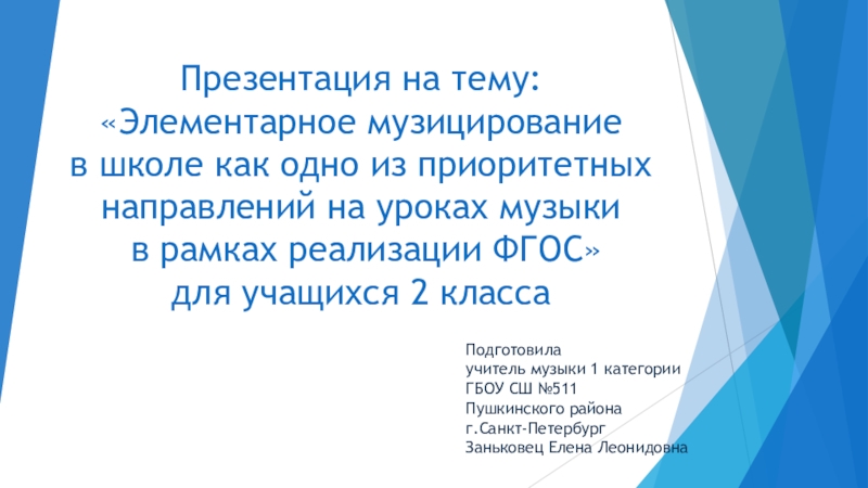 В элементарном музицировании ребёнок является творцом, а педагог умело его направляет.»