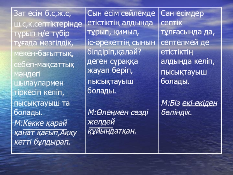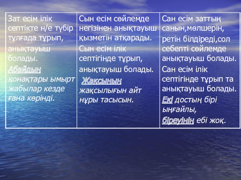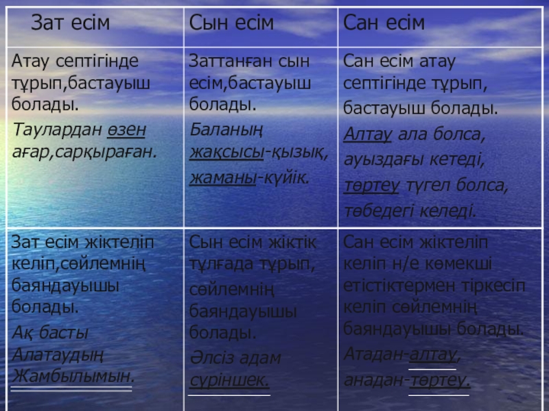 Зат есім,сын есім,сан есімнің және есімдіктің сөйлемдегі қызметі7-сынып