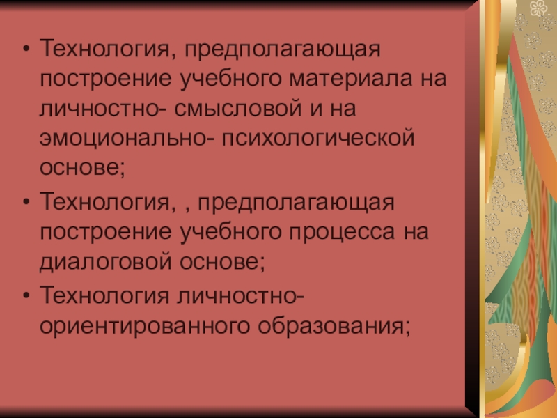 Слайд 5Технология, предполагающая построение учебного материала на личностно- смысловой и на эмоционально-