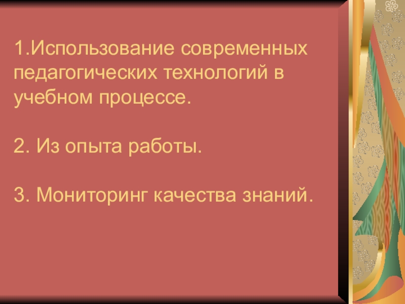 Слайд 21.Использование современных педагогических технологий в учебном процессе.