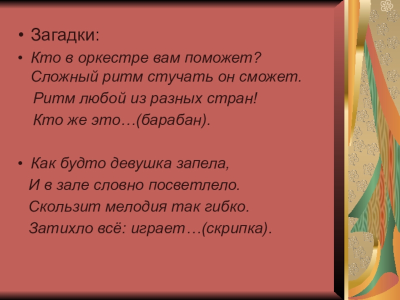 Кто в оркестре вам поможет? Сложный ритм стучать он сможет.