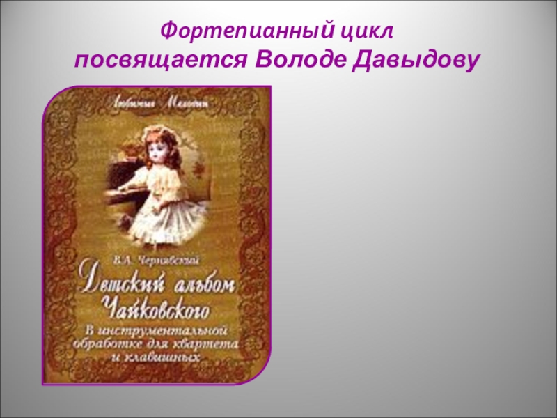 Слайд 11Фортепианный цикл посвящается Володе Давыдову
