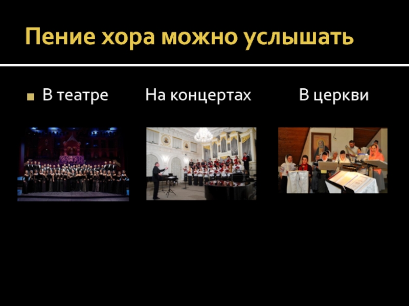 Пение хора можно услышатьВ театре     На концертах