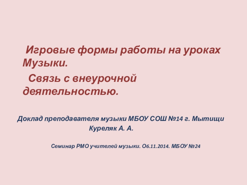 Доклад преподавателя музыки МБОУ СОШ №14 г. Мытищи