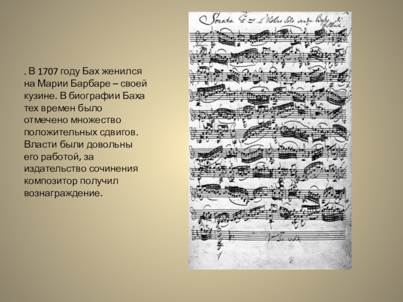 Слайд 8. В 1707 году Бах женился на Марии Барбаре – своей