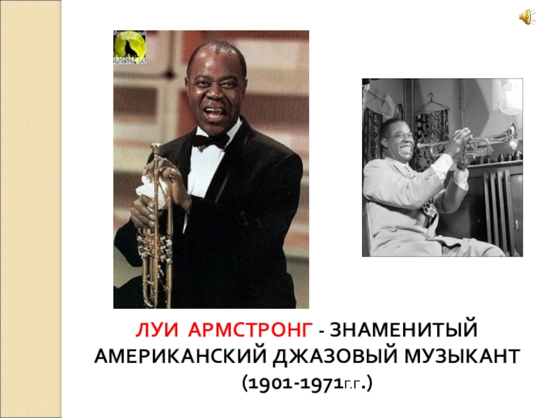 ЛУИ АРМСТРОНГ - ЗНАМЕНИТЫЙАМЕРИКАНСКИЙ ДЖАЗОВЫЙ МУЗЫКАНТ(1901-1971Г.Г.)